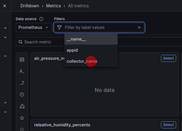 Drilldown>Metrics>Filterswählen Sie als Filtercollector_name