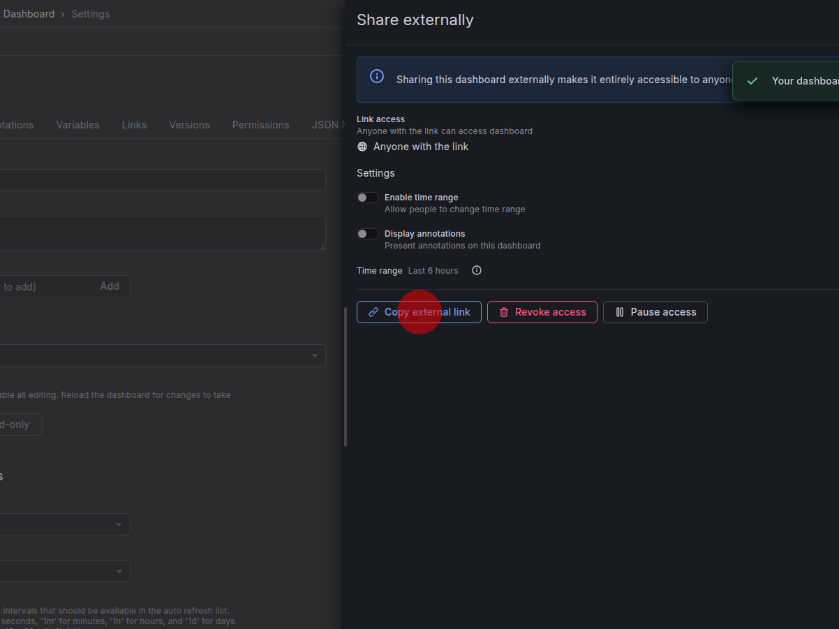 Damit ist das Dashboard für alle Personen einsehbar, die über den externen Link verfügen.